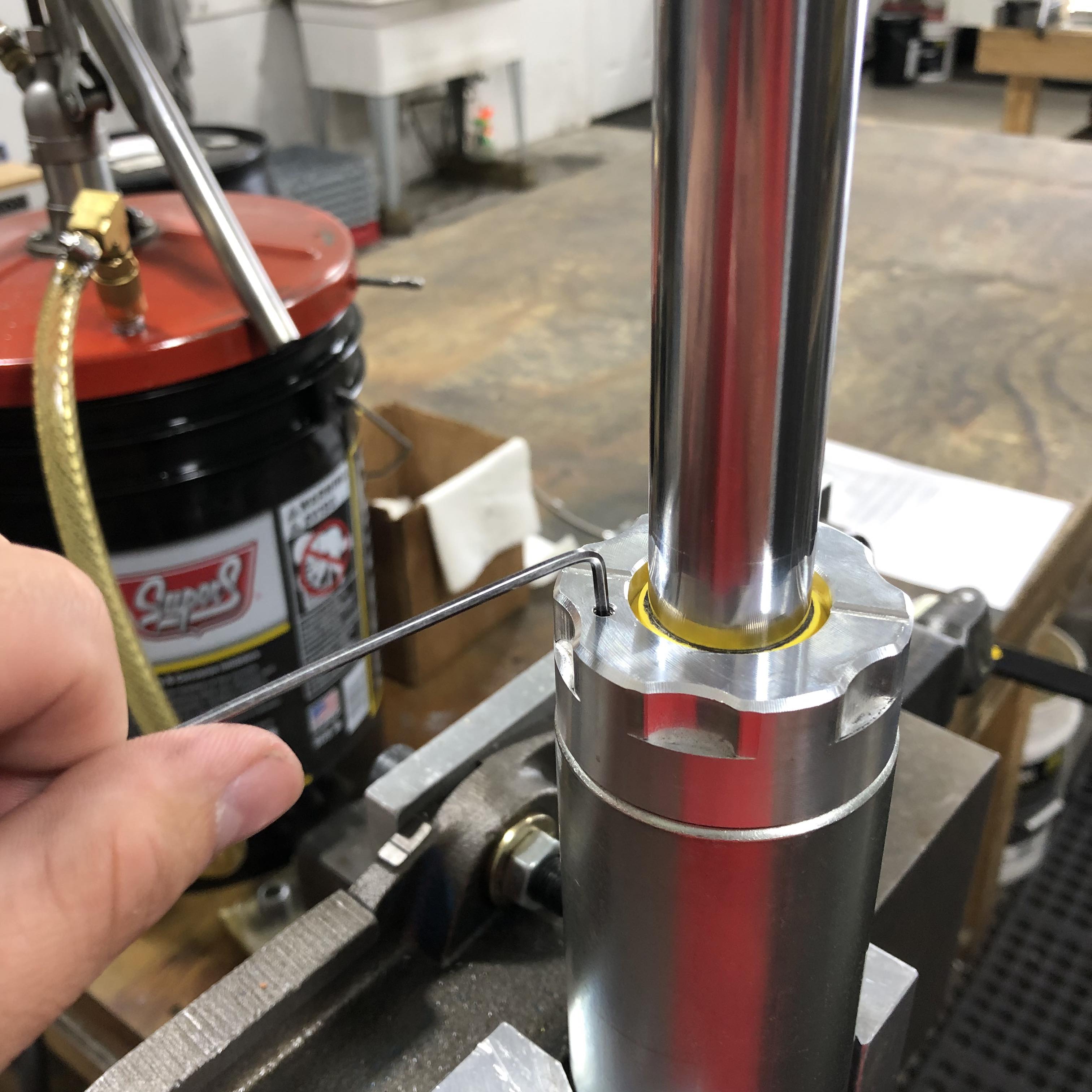 - Verify shock shaft can move up and down without binding. If so you have over tightened the seal cap.