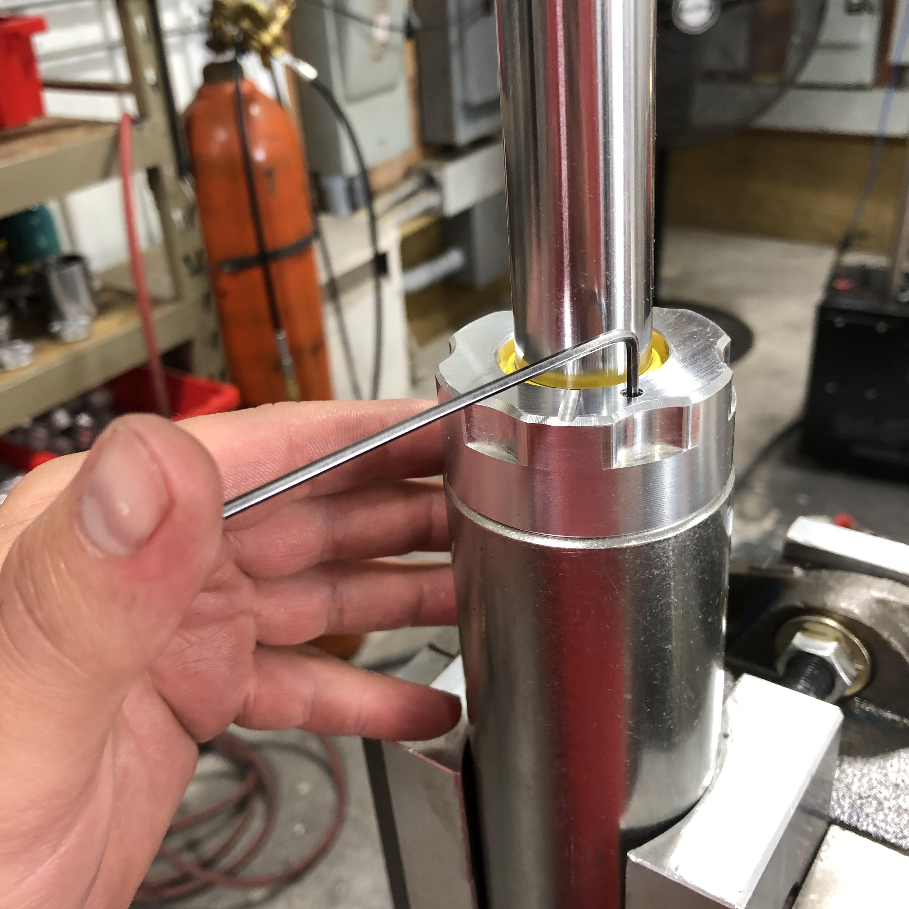 - Compress the shaft all of the way into the shock.