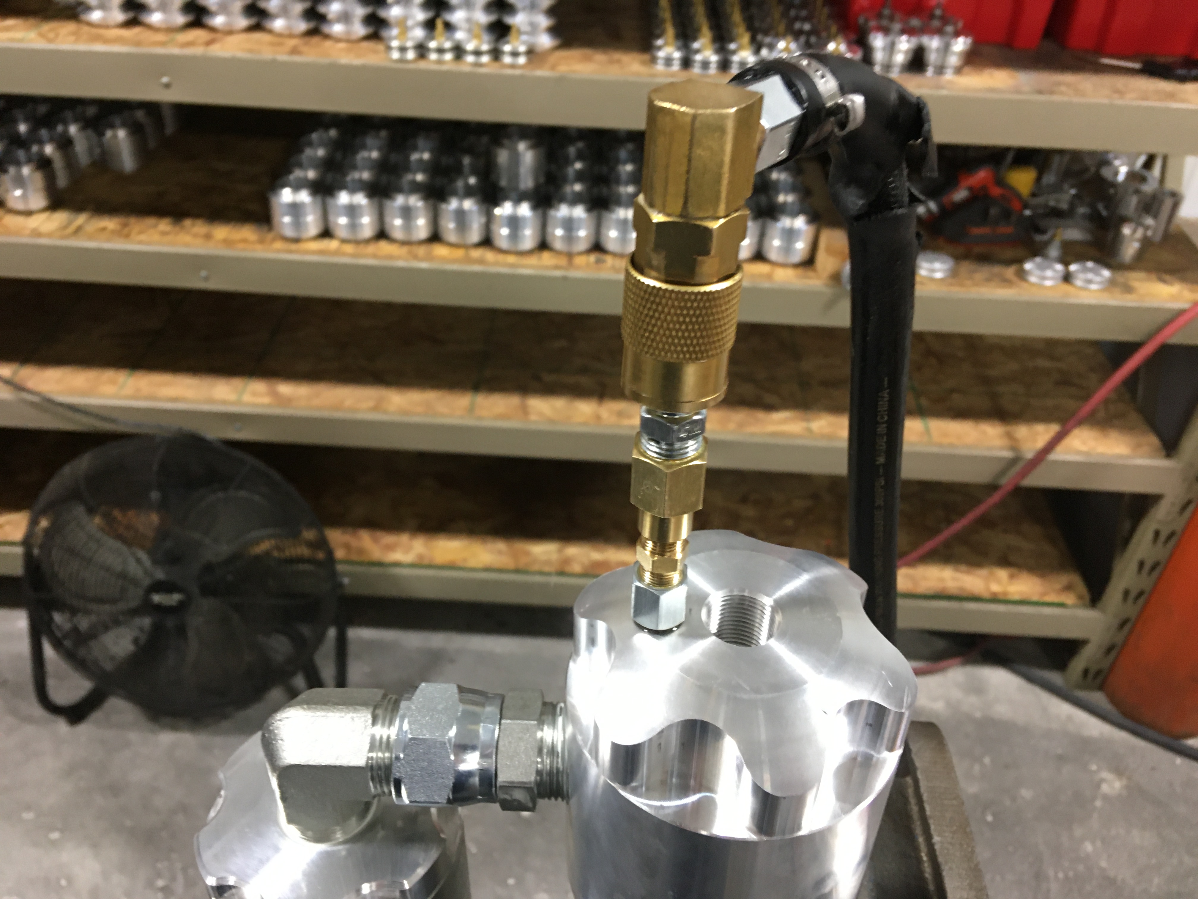 On the oil side of the shock, completely fill the reservoir until it is full.