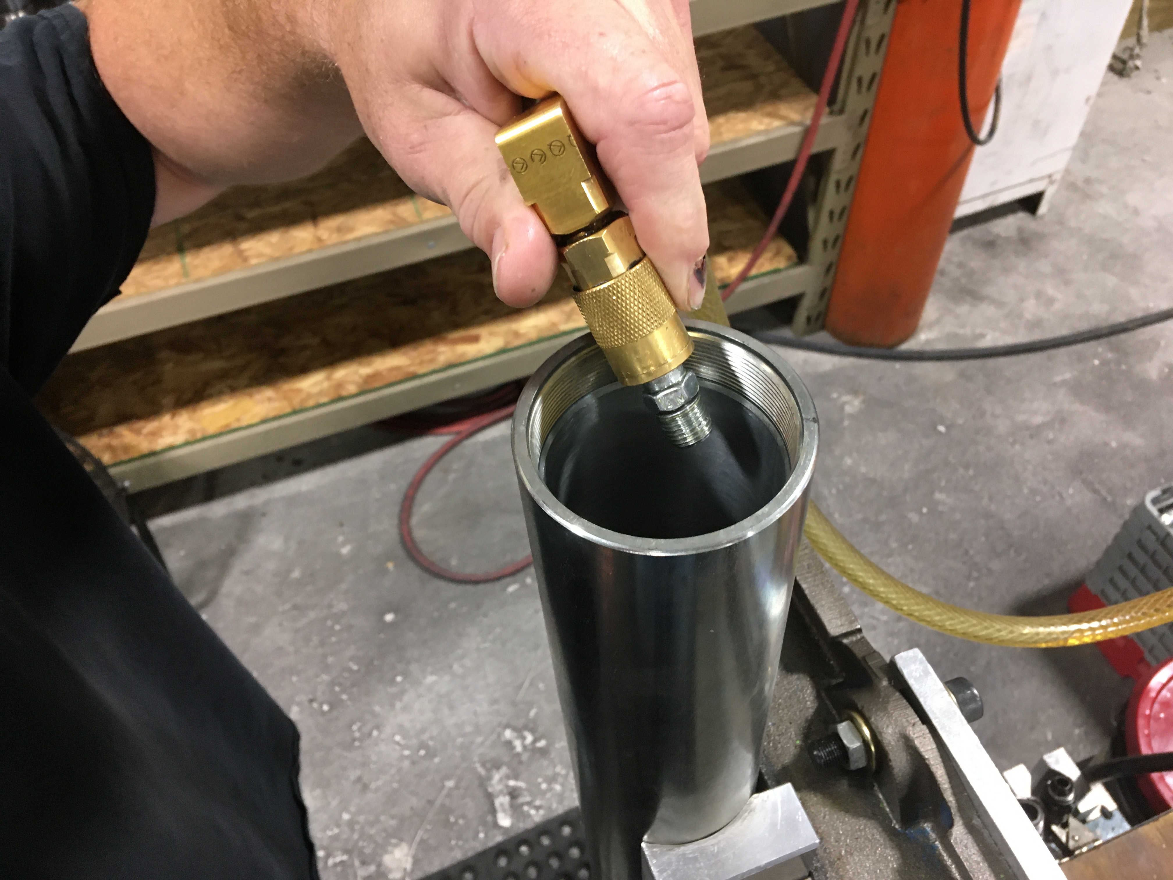 Charge with nitrogen to extend the shaft and check for leaks.